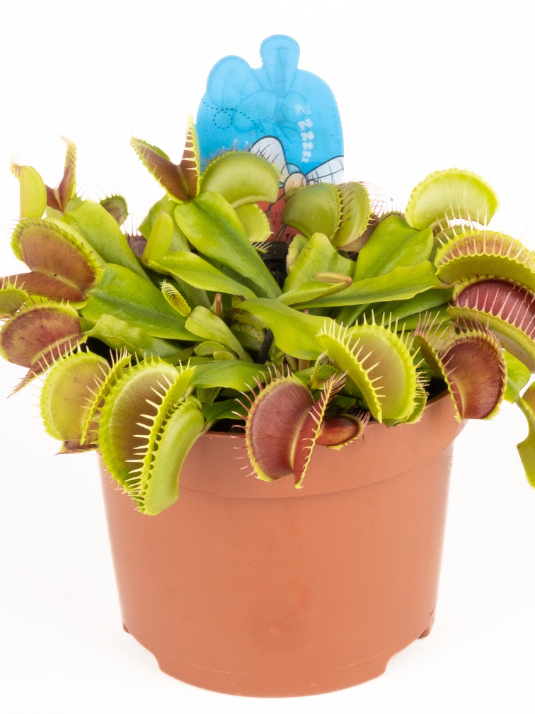 Deze grote versie (12 cm potmaat) Venus vliegenval (Venus Fly Trap) met indrukwekkende grote, roodgekleurde ‘mondjes’ is dé blikvanger in jouw huis. (Afmeting: ø 12 cm x ↕ 10 cm).